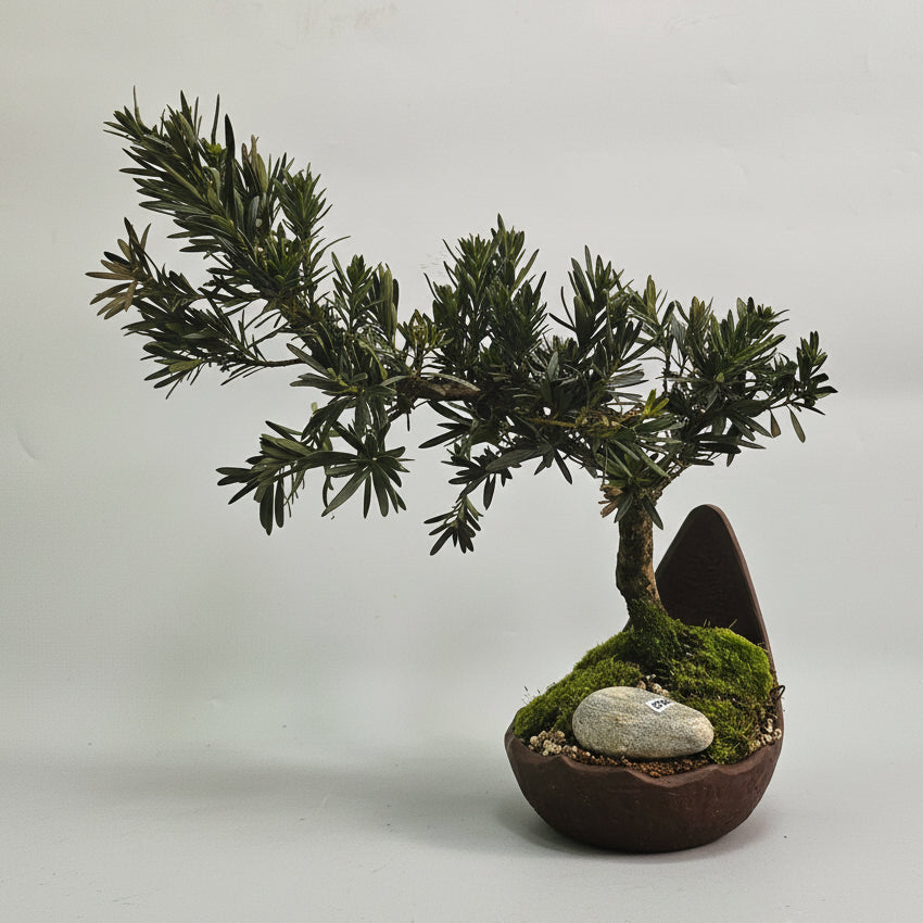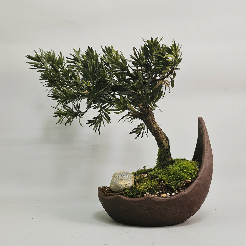 Buddhist Pine (Podocarpus Micro) Premium Bonsai Tree Bundle | Shaped | In 21cm Half-Moon Pot | 5262